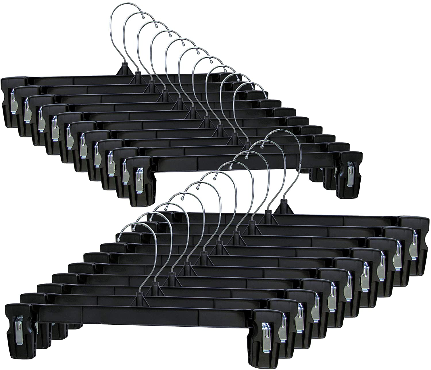Hanger Central Space Saving, Heavy Duty Slim Plastic Pants Hangers, Ridged Non-Slip with Pinch Clips, 360-Rotating Chrome Swivel Hook, in Black, 10/12/14 Inch, 30 Pack (10")