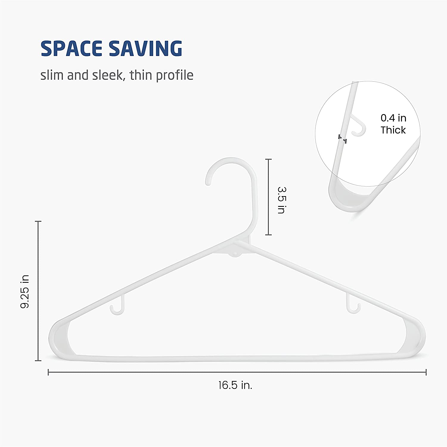 White Standard Plastic Hangers (50 Pack) Durable Tubular Shirt Hanger Ideal for Laundry & Everyday Use, Slim & Space Saving, Heavy Duty Clothes Hanger for Coats, Pants, Dress, Etc. Hangs up to 5.5 lbs
