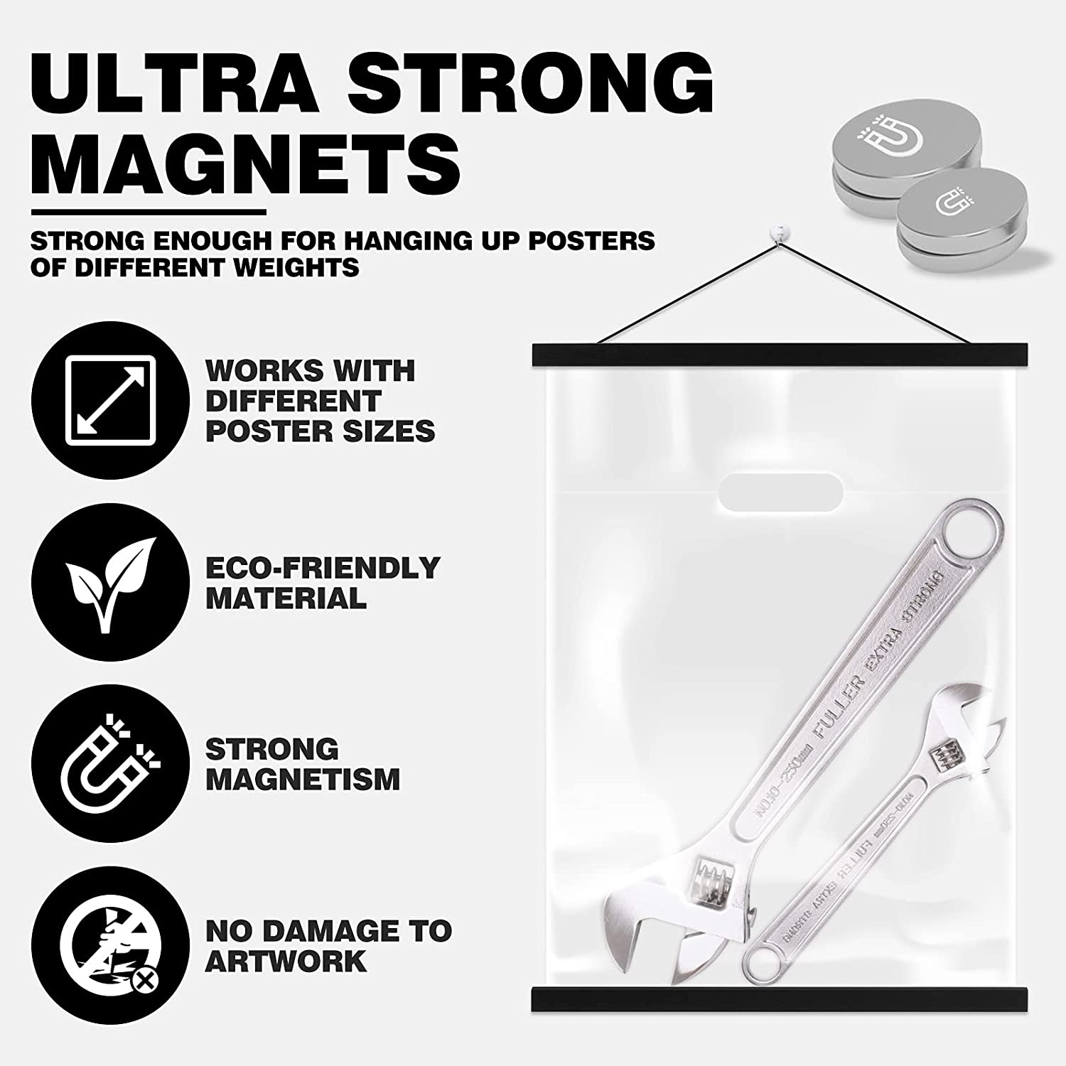 - Wide Compatibility: The 8-inch magnetic poster hanger can accommodate any 8" wide poster regardless of length, such as 8x8, 8x10, or 8x11.